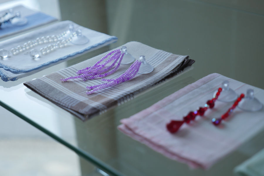 La cape monumentale réalisée avec des vêtements par Socheata Aing rend directement hommage à la figure de la matriarche qui raconte des histoires, celle qui sait, « la que sabe », et qui transmet oralement son savoir aux générations suivantes de femmes qui seront à leur tour porteuses des récits propres à leur société. L’artiste présente également une série de larmes fabriquées en perles et destinées à être portées sur le visage. Ces larmes donnent de l’importance aux sentiments précieux que l’on a enfouis au fond de nous-mêmes pour ne pas les montrer, comme la faiblesse et l’intime, et les donne en partage à ceux qui veulent bien y prêter attention.
